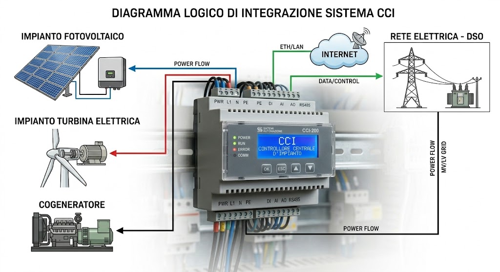 Per adempiere alle Delibere 540/2021 e 385/2025 di Arera nonché alla normativa CEI 0-16 allegati O-T-M, Pimmel è in grado di adeguare, fornire ed installare il CCI, ovvero il dispositivo necessario per adeguarsi alla normativa. Esso è in grado di interfacciarsi con dataloggers, inverters e meters, raccogliendo le informazioni anche con protocolli differenti fra loro e convertendoli nello standard richiesto dal DSO. Adatto per impianti con potenza nominale pari o superiore a 500kW connessi in MT Media Tensione.
